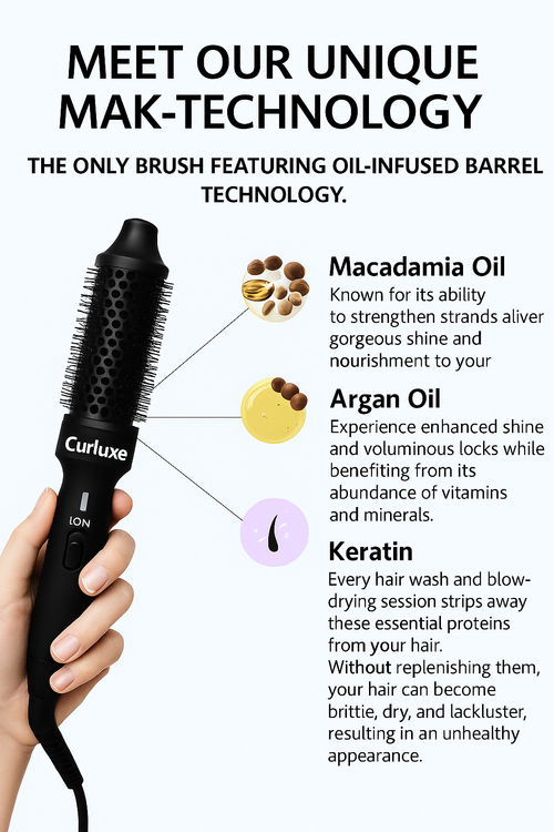Achieve professional-grade shine and impeccable styles quickly using Curluxe’s keratin and oil-infused styler.